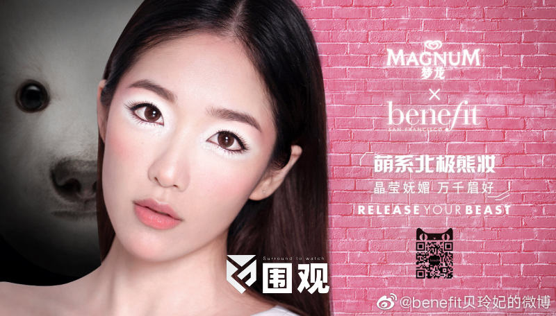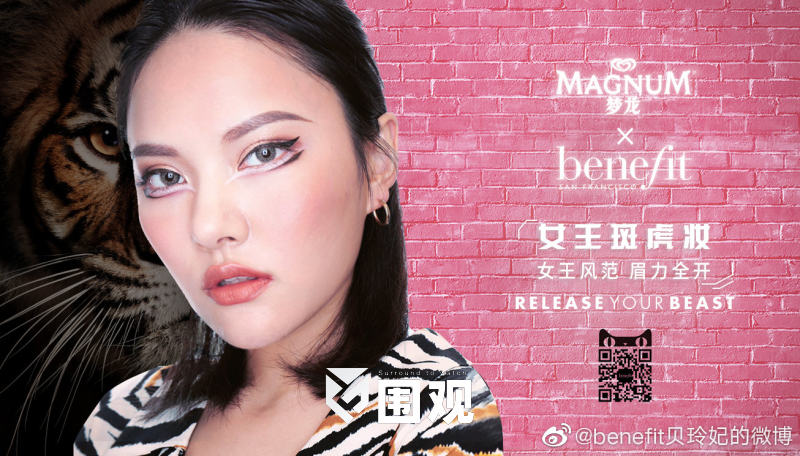 Benefit贝玲妃特别设计了四款野兽妆容,将冰淇淋甜品融合美妆体验,与梦龙RELEASE THE BEAST 广告大片相呼应,惊艳呈现释放内心狂野的主题。