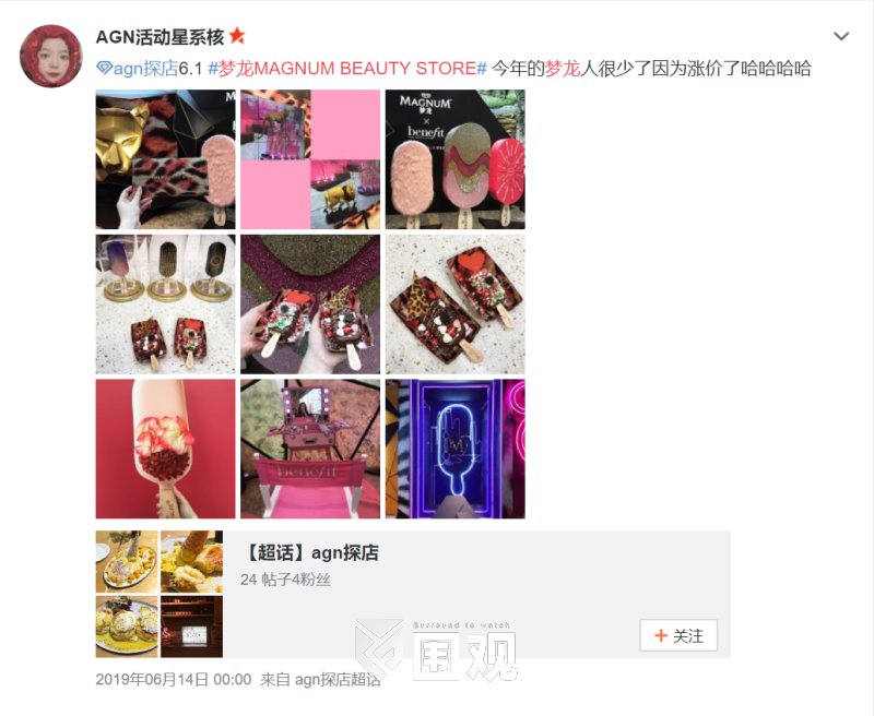 在推出“MAGNUM BEAUTY STORE”快闪店之前,梦龙就在网络平台预热了一波, 大面积投放"释放内心狂野RELEASE THE BEAST"的广告宣传片,在快闪店开业当天,梦龙还邀约了明星阿云嘎出席开幕仪式。 此番高调联手贝玲妃,可以看出梦龙已不再满足于做冰淇淋甜品店。