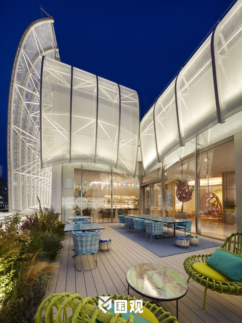 白天LOUIS VUITTON店铺外观,晚上的露台