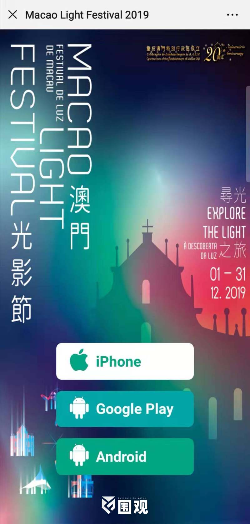 2019澳门光影节于本月1日揭幕,光影节以“寻光之旅”为主题,透过光影与观众的互动诉说澳门的故事。