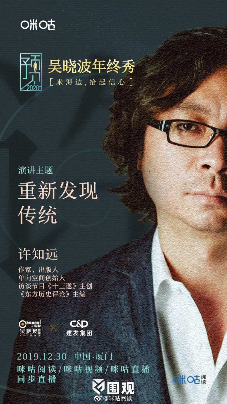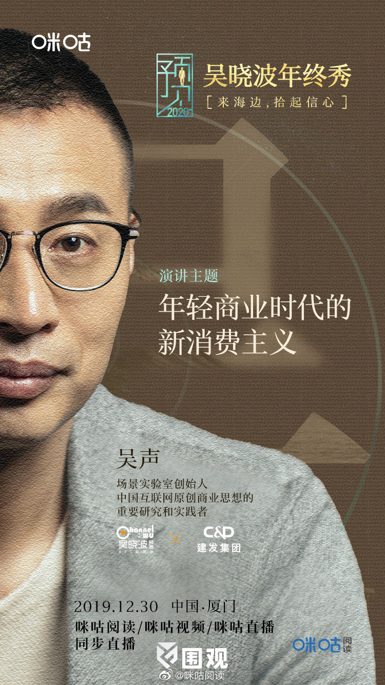 知名财经作家吴晓波 携手场景实验室创始人吴声、如是金融研究院院长管清友、著名出版人单向空间创始人许知远,与大家共赴这场大时代风潮下的知识跨年之旅,以脚步丈量2019,以思想预见2020。
