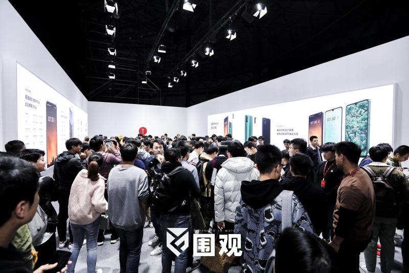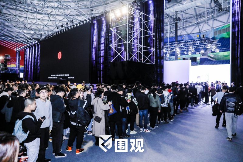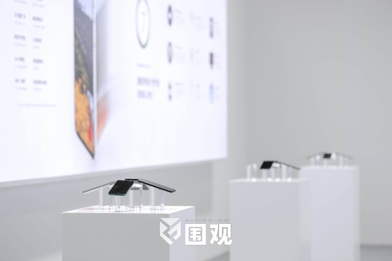 发布会结束后,观众在指引和工作人员的指挥协调下有序进到展区参观体验新品 展区设计大面积留白,凸显产品极简的设计理念