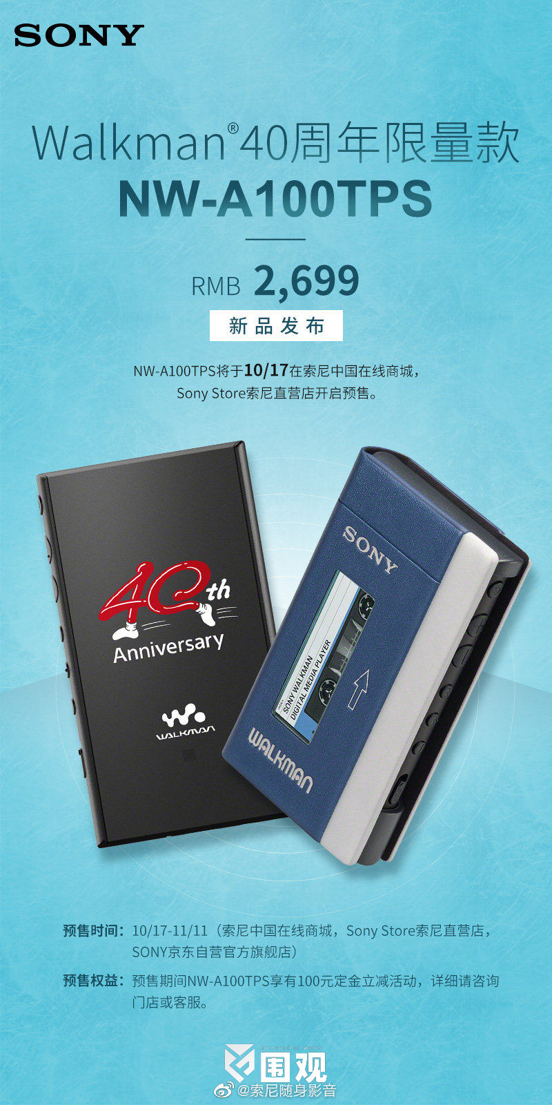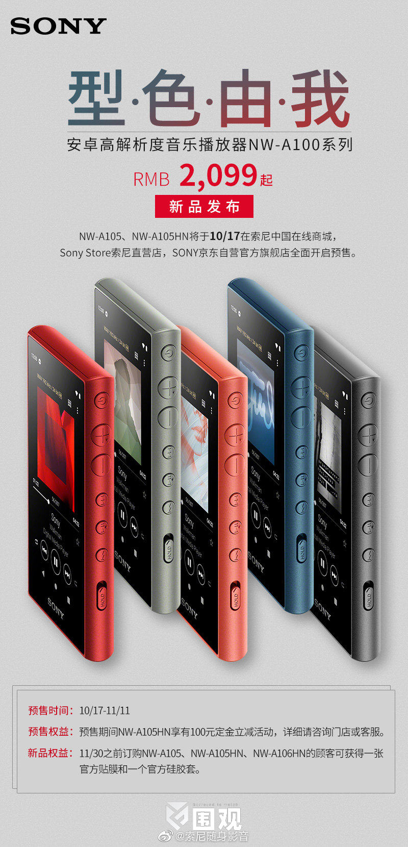 纪念版新品安卓高解析度音乐播放器NW-ZX500系列和NW-A100系列。