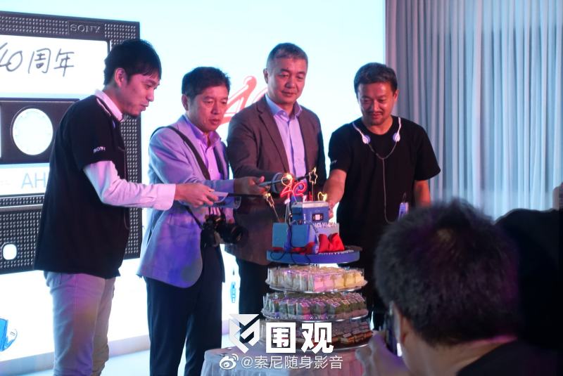 活动的最后,索尼公司总裁与工程师在此上台,点亮Walkman 40岁生日蛋糕上的蜡烛,全场为Walkman唱响生日之歌!