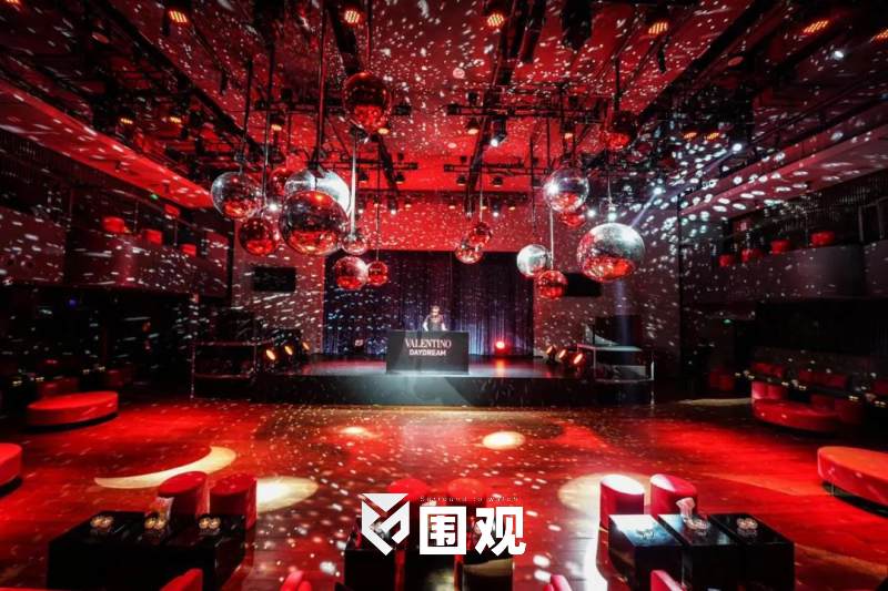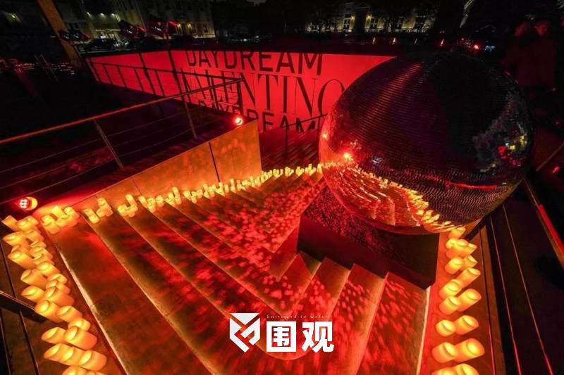 入口处无数蜡烛暖黄色的光应和着 VALENTINO DAYDREAM 标志性的红,在1.5米大镜球的反射下宛如星光落地。