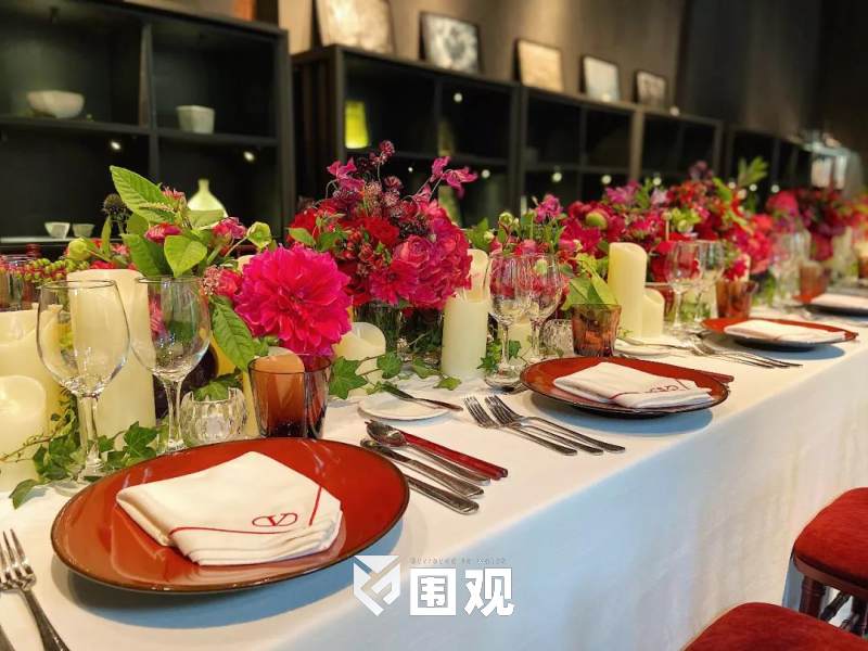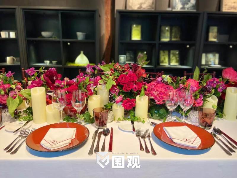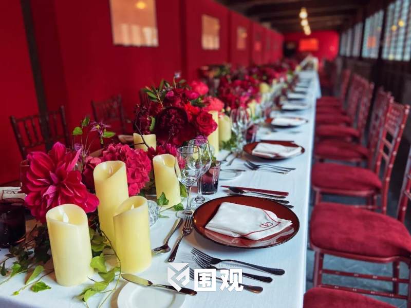 晚宴从设计、定制、搭建到所有细节布置均由La Mode en Images完成。晚宴的布置,依旧延续VALENTINO标志性的红色,作为品牌的经典用色和中华文化的代表颜色。