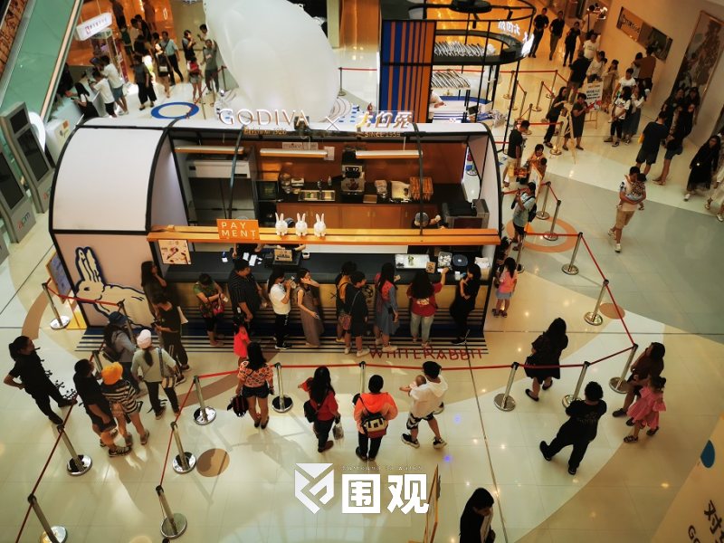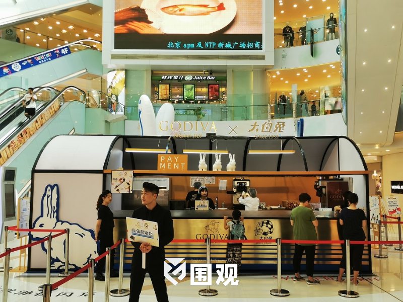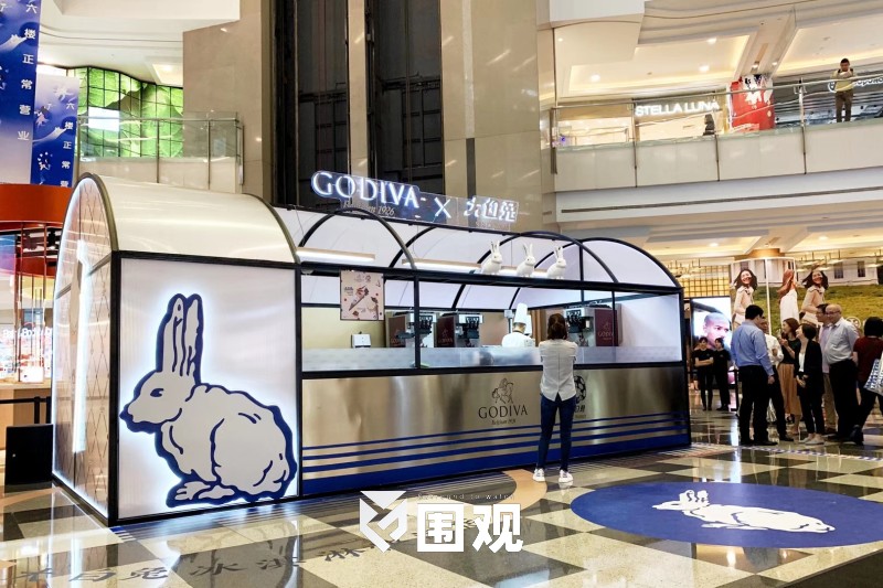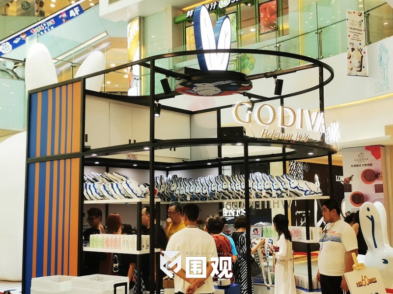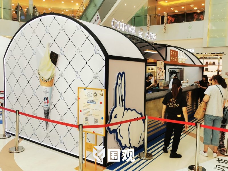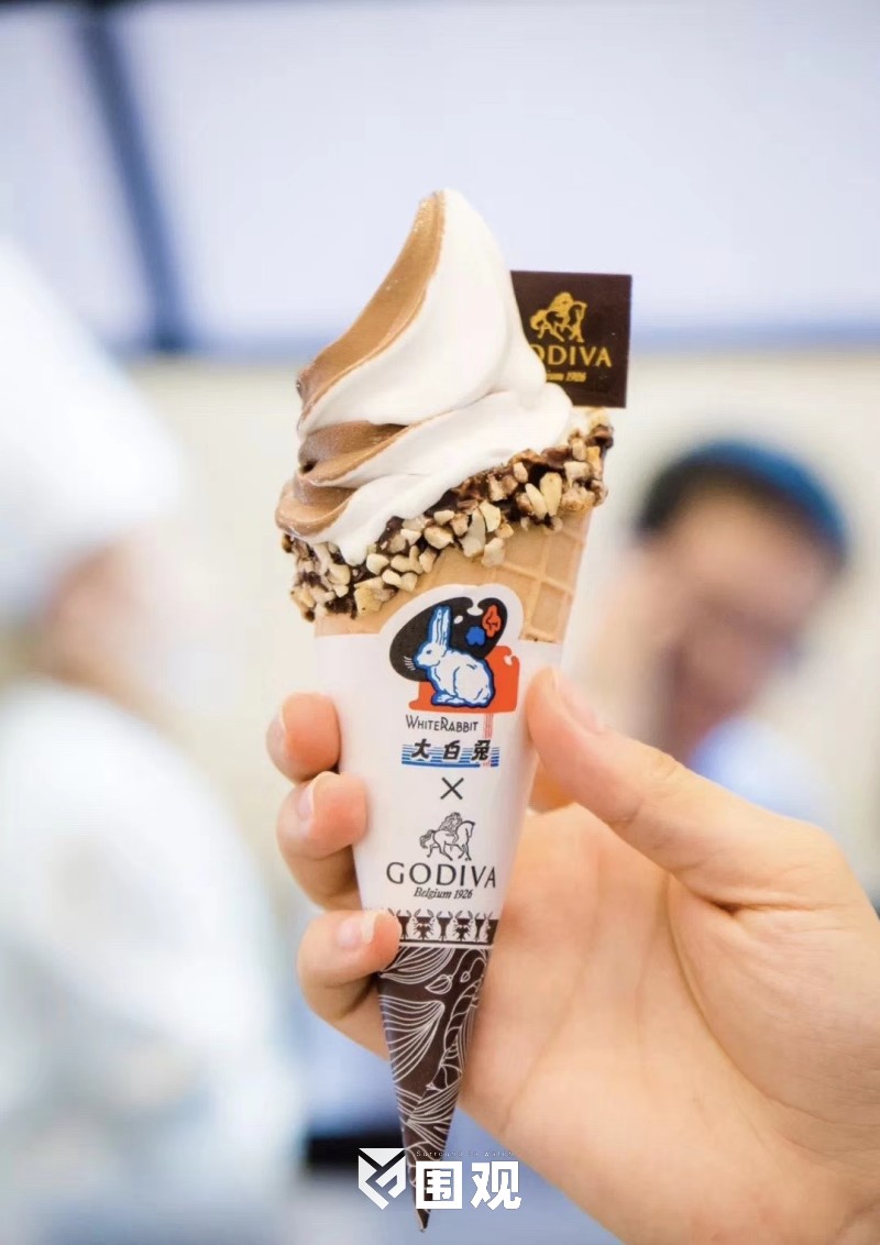 在本月上海,“GODIVA X 大白兔”产品率先登陆了上海人广来福士。这个有个GODIVA熟悉造型的高端豪华甜筒有了大白兔的身影。这是一个绝妙的组合。