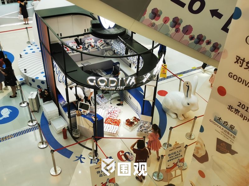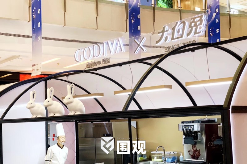 两大空间,分别是GODIVA的专属产品冰淇淋售卖空间,和大白兔的衍生品产品售卖空间。