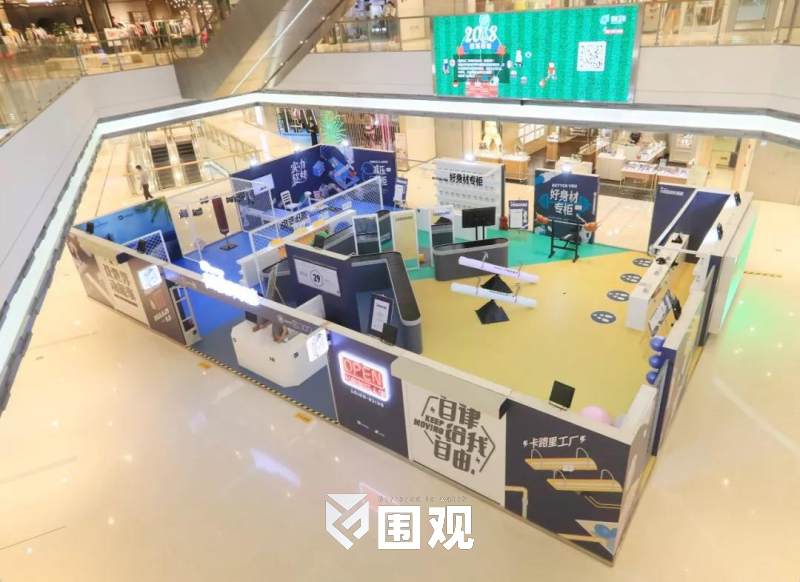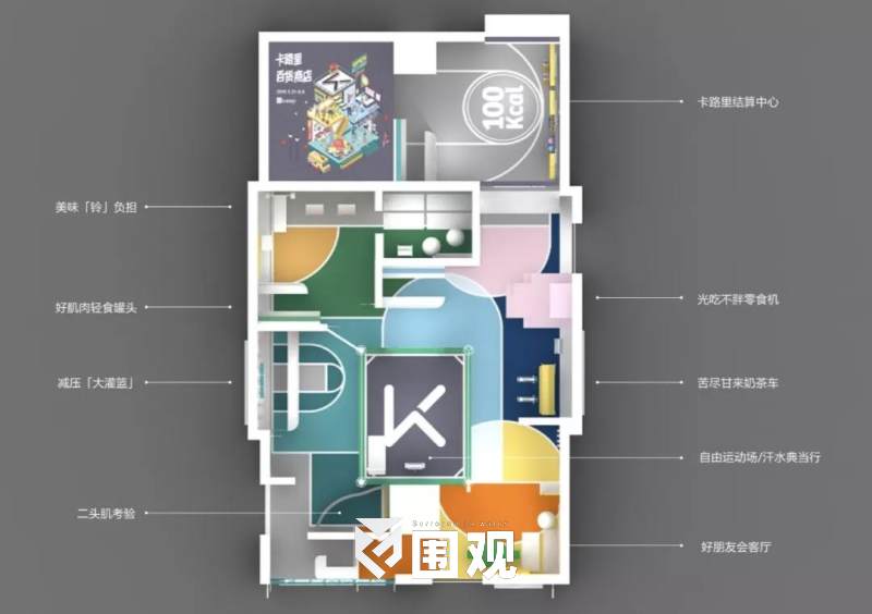 形象上,Keep的“K”更成为视觉中心;空间上,在区域内做了有隔断的分割,这样保证了区域的独立性,但是增加了成本,体验者的感受上,独立区域更适合在“玩在其中”,因为安!全!感!