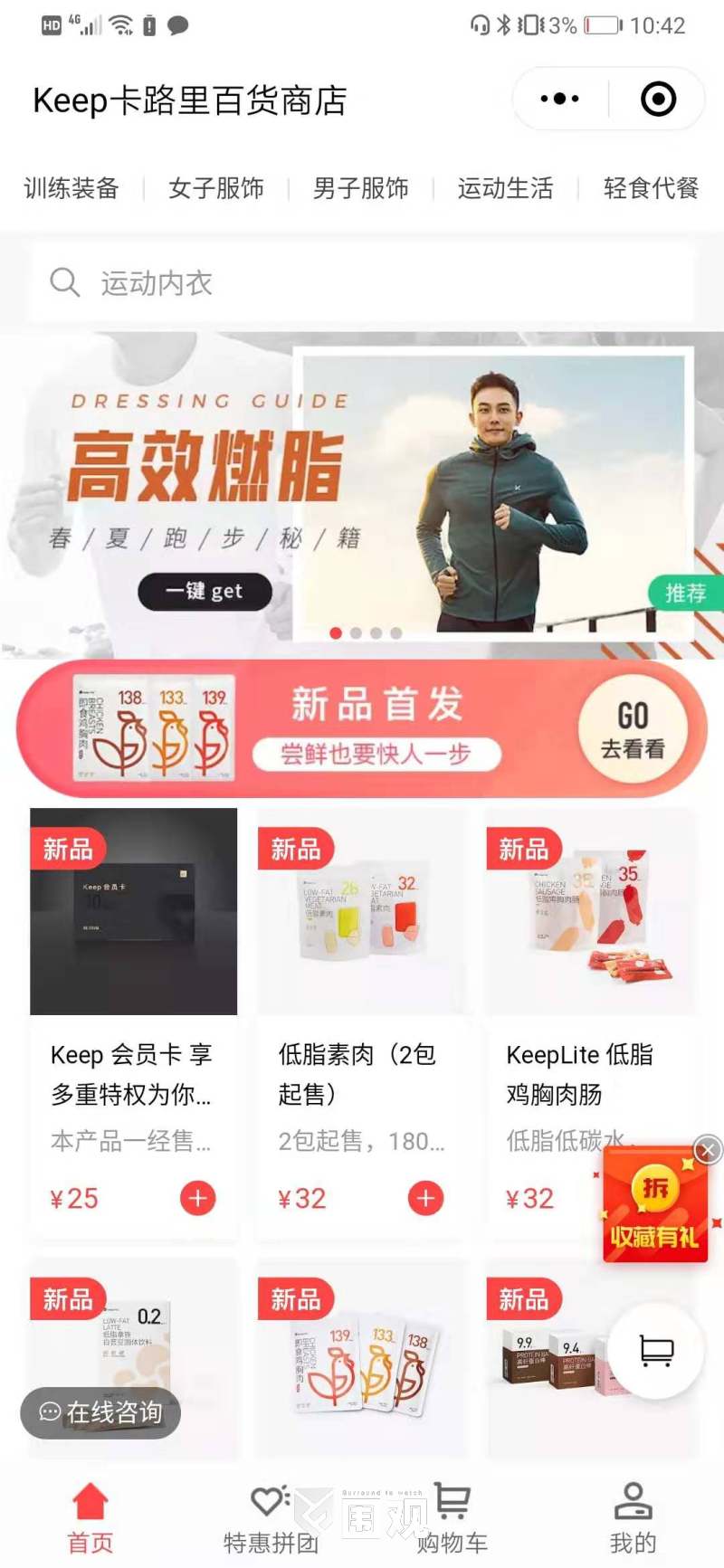 线上真的有一个“Keep商城”小程序,也真有一个“Keep卡路里百货商店”小程序。
