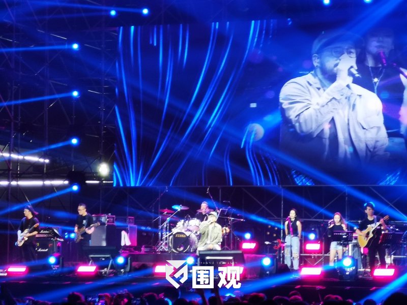 这是新裤子的演出现场,大概是在唱 艾瑞巴蒂