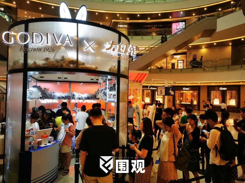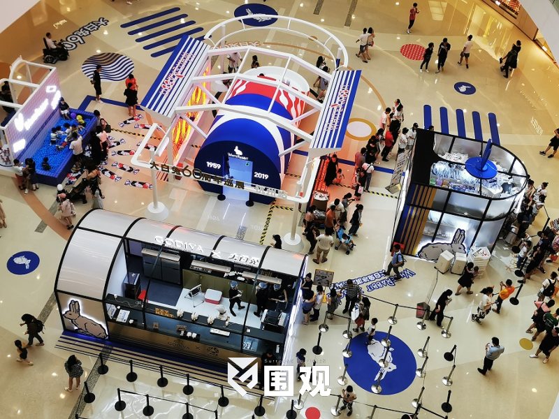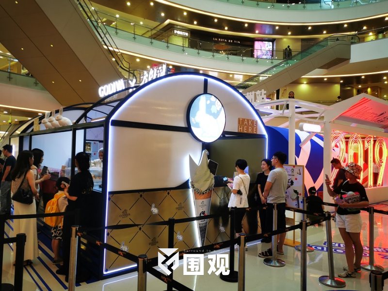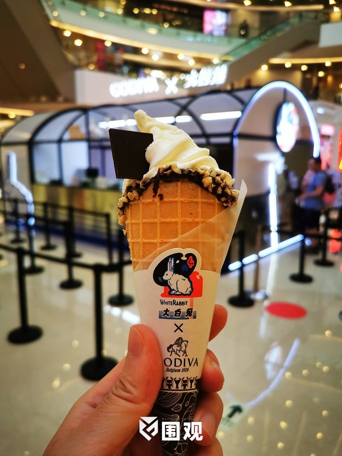 明显大白兔周边售卖的人群大于冰淇淋的售卖人群