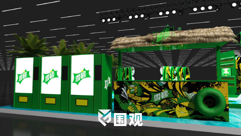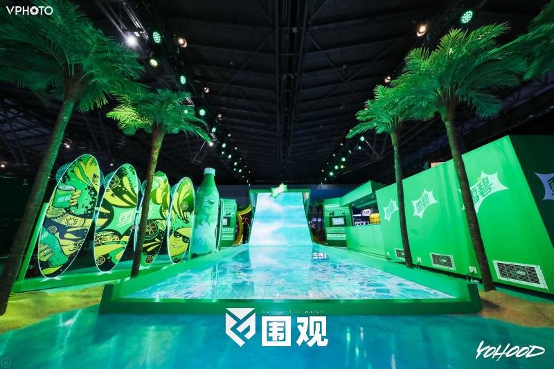雪碧携新品爽椰派在现场打造了一个巨型海岛,将「海岛般即刻酷爽」进行到底