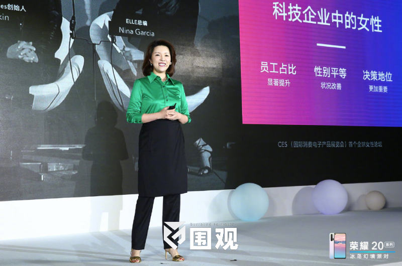在发布会现场“荣耀战略和品牌发展官”--张晓云, 分享了荣耀品牌和新女性之间的故事,并带大家认识了四位站在科技、文化、时尚等角度的新时代独立女性代表。