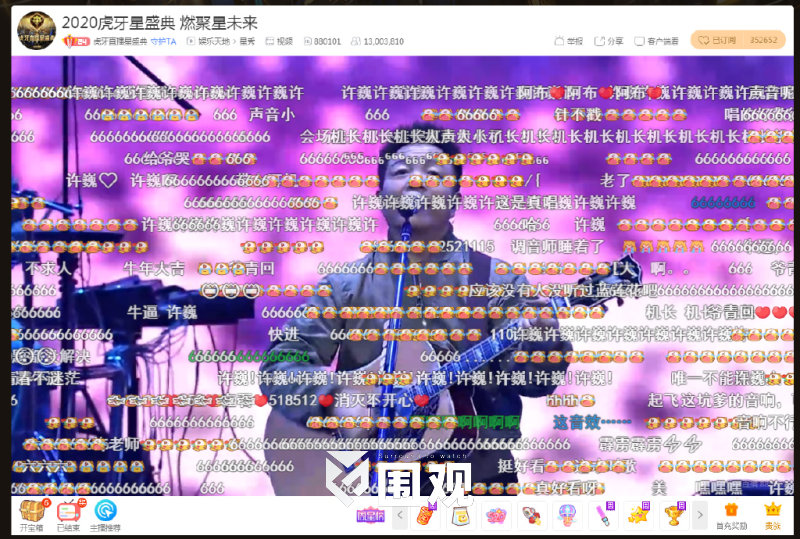 许巍的直播场面,还是在虎牙平台上有效果的!