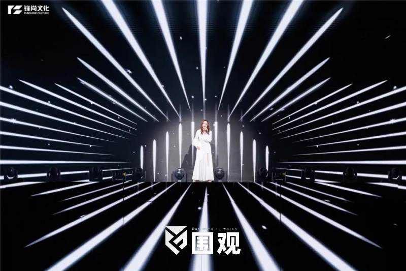 【锋尚文化】主创团队通过将地面与立面屏幕相结合,通过影像的内容风格变化,构筑视觉震撼的表演空间。二层舞台与两侧矩阵屏幕设计,拓展视觉维度和表演空间,智能机械开合屏设计为表演增加仪式感。同时空中升降冰屏增加视觉层次,演员置身其中互动表演,呈现创意生动的视觉观感。