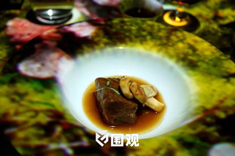 松茸牛肉,来自香格里拉的松茸是高原密林对于漫长雨季的答复,在黄油里简单煎一煎,就能激发曼妙香气。澳洲牛肋条猛火快煎定型,肉汁会被牢牢锁住。再投入粤式高汤里慢煮,听起来非常西餐的组合,就被浸染上粤菜的底色。