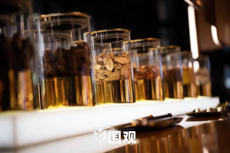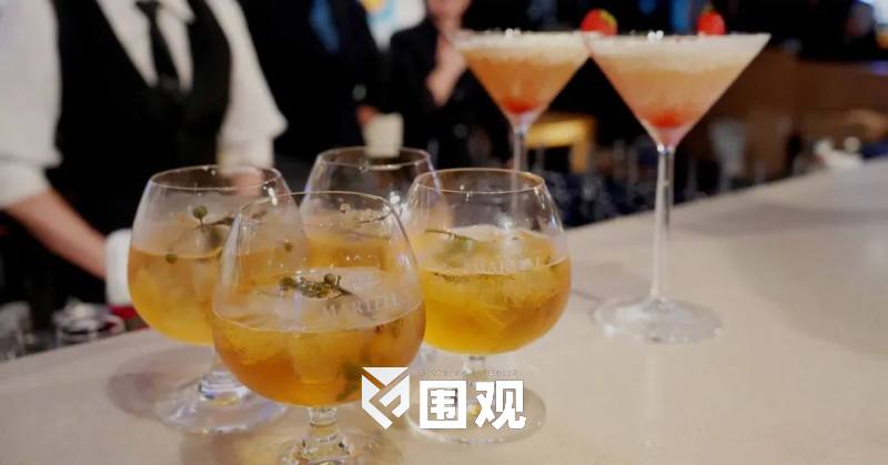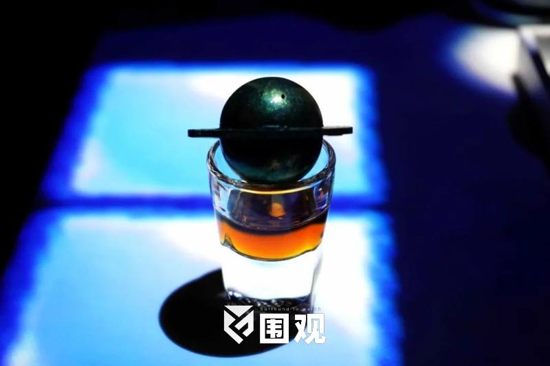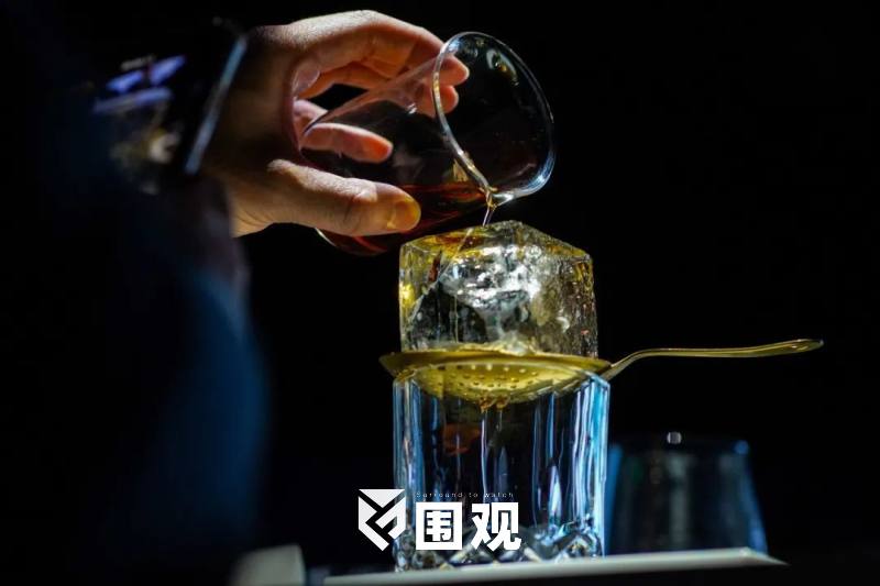金光灿灿的吧台,酒水满桌,花样亦是稀奇。海盐焦糖味的钟薛高泡在马爹利鼎盛的金色酒液里,包着干邑酒心的巧克力酒心钟薛高可以一边走一边吃。