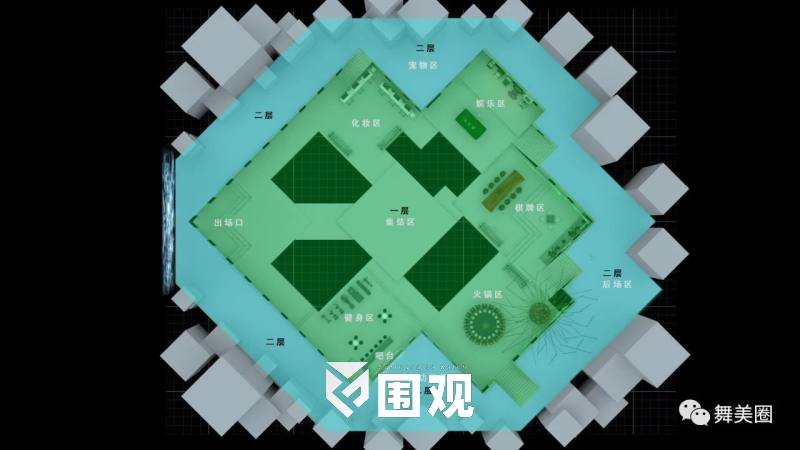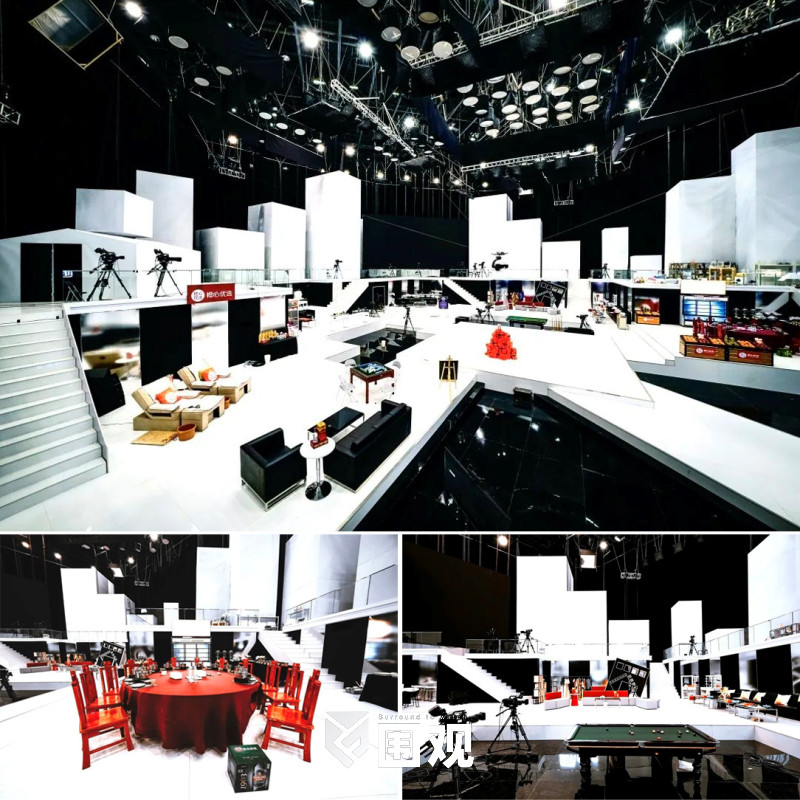 等候区为开放式多层空间设计,以白色为主色调,方格子元素同主舞台相呼应。各区域以party形式将场景分成潮“new”区、哈哈区、团宠区、剧场区、干饭区多个部分,几十位位艺人可以在这里打麻将、打台球、吃火锅,还能和大剧制作人轻松畅聊,所有等候区的幕后状态都将毫无保留的进行直播。