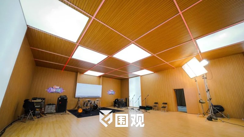 后台排练室设计风格延续主舞台的格子视觉元素,采用木纹为主材质。在后台区,你可以全程关注明星嘉宾在演出候场、上下舞台的状态,排练室排练过程,不错过任何台前幕后的瞬间。