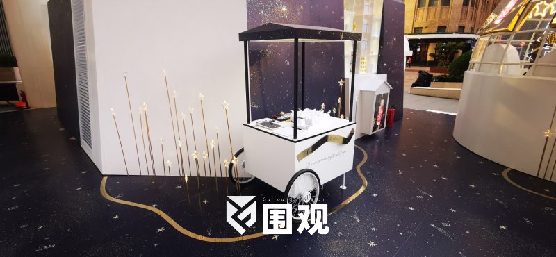 这是一个兑换产品的小礼品车,工作人员冻得在边上避风