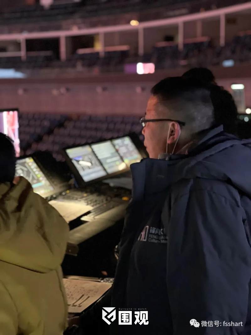 本次跨年晚会选在梅赛德斯-奔驰文化中心,在实际落地搭建的过程中面临着场地大、多面性强、复杂性强、有很多现场未知的因素等问题,但是灯光总设计师黄涛带领SH锋尚世纪的小伙伴一一克服。为了避免威亚承重过大,选用重量轻的灯具;考虑到安全问题,精准把控数控灯架的高度、距离。布灯精准性是本次团队遇到的最大的难题,旋风造型节节相扣把舞台最重要的区域用非常细致的数据完全占有,所以在保证基础情况下所有的效果光、轮廓光都必须在一个非常精确的数值下布置光位,夹缝求生存,最大化利用仅有的空间创造最惊艳的效果。