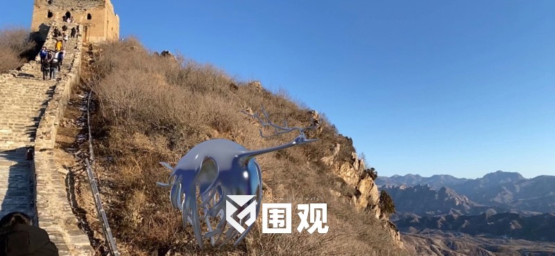 本次AR发布的新作,从《共境》系列十余件作品中选择了三件:龟、鹤、鸽子,以增强现实(AR)技术在世界文化遗产长城进行公益云首发,阐释和传递“自然”、“共生”、“和平”、“共境”等理念和愿景。