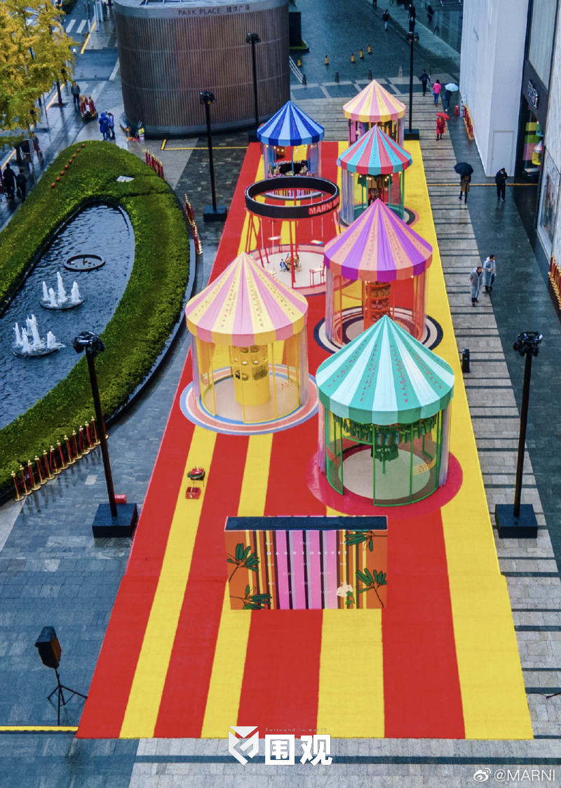 这个由鲜明色彩以及几何图形组成的趣味乐园,是Marni童趣的一面。 哥伦比亚手工匠人精心打造的限量版包袋、装饰品和家具,幻化成马戏团中的主角。红黄条纹装饰的草地映入眼帘,欢快的旋转木马缓缓转动等待你的到来,一起先睹为快。