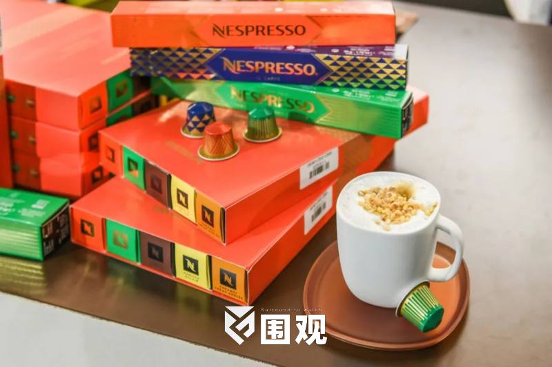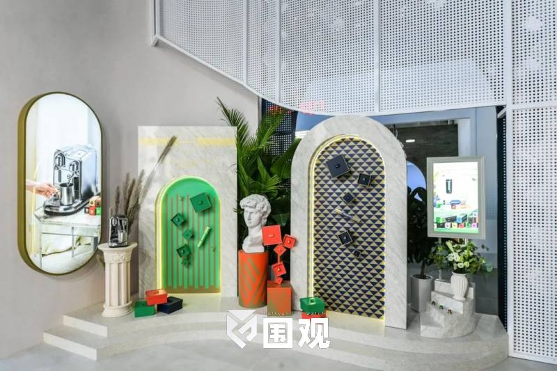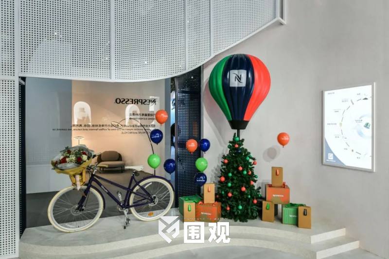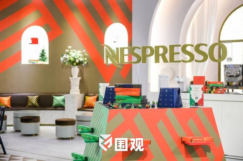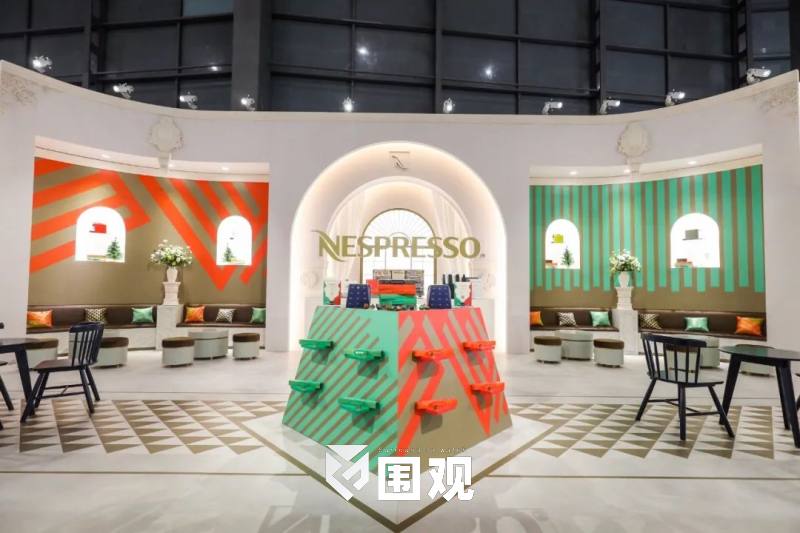 特别的设计让观众仿佛置身节日礼盒内部,在浓烈的节日氛围中体会咖啡的魅力。欣赏展示区以咖啡胶囊包装为灵感所采用的撞色设计,品享一杯以意大利榛子蛋糕风味咖啡为灵感特制的白巧克力榛果拿铁。了解设计艺术与节日美学的碰撞。