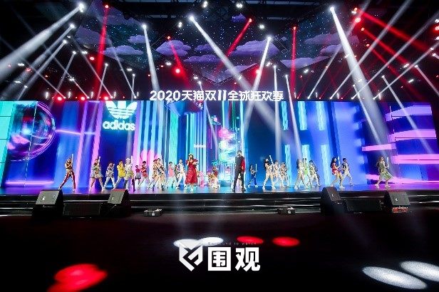 在灯光和舞美的完美配合下,现场弥漫着快乐的狂欢季氛围。观众们跟着现场舞者的动感舞蹈挥舞双臂,体会到天猫双十一的无穷乐趣!
