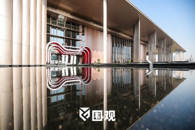 为中心发散设计,使用立方体为基础,寓意领奖台。并且呈现数组运动方式:将舞台两侧立方体设置为可前后数控移动的 LED 矩阵。