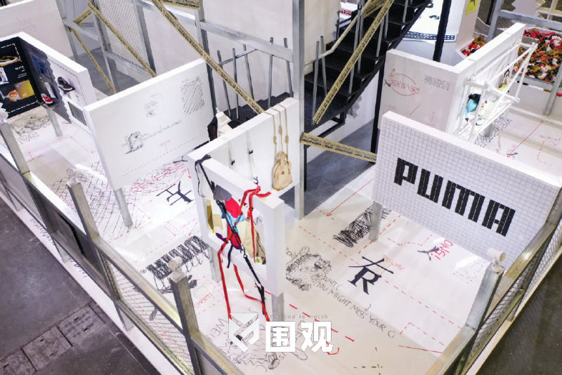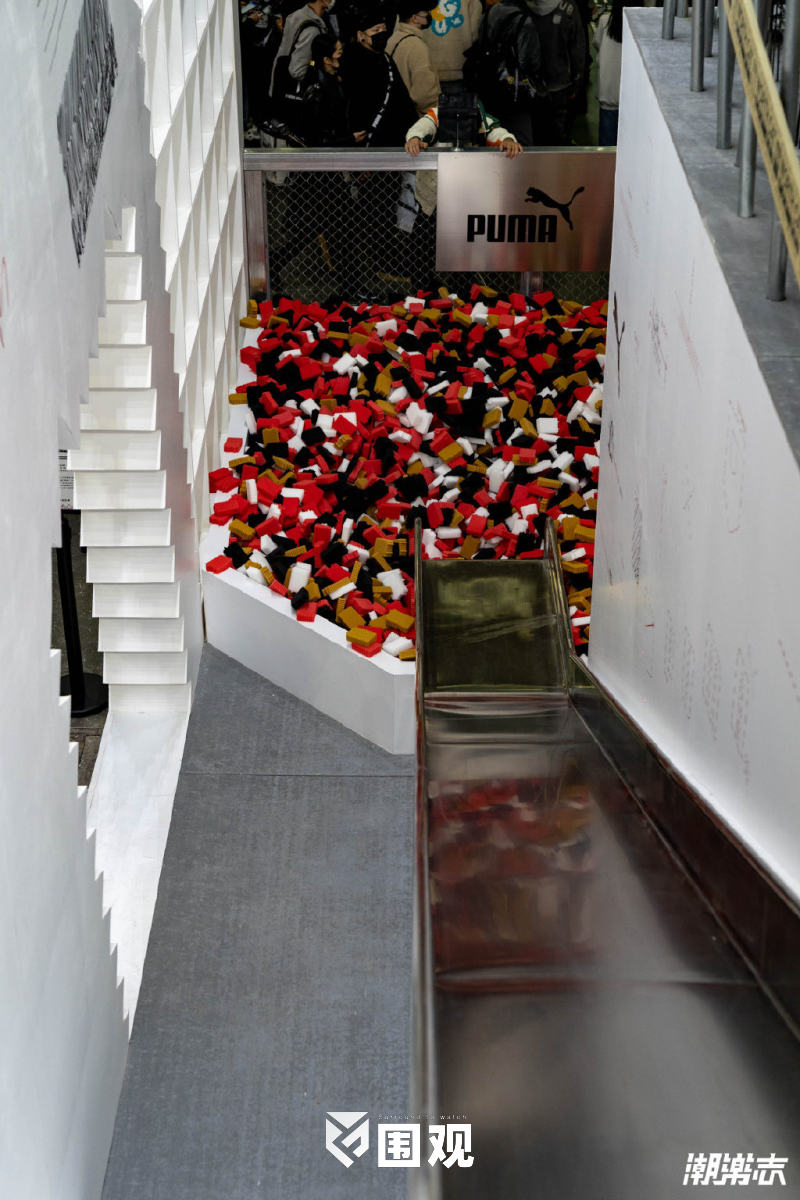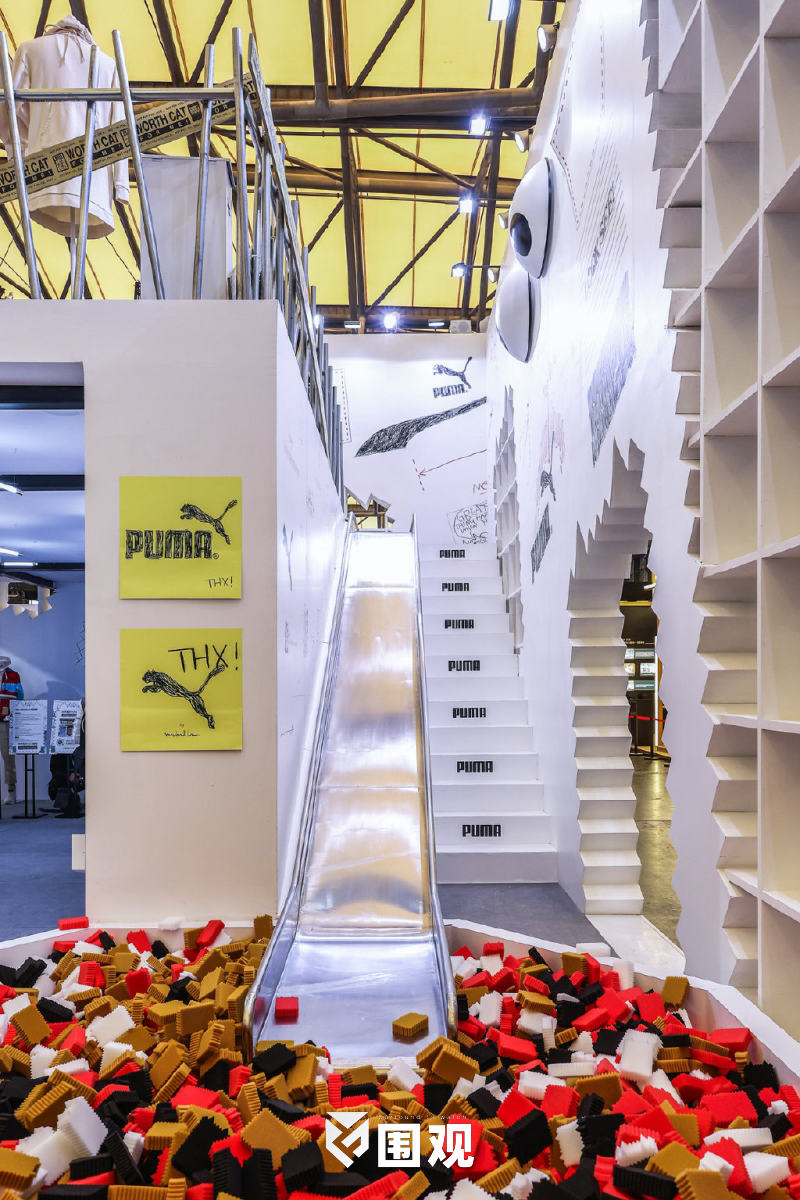 PUMA的“半成品”「试错工作室」以涂鸦、迷宫风格叙述品牌历史与文化,二楼还设置手工DIY WORKSHOP和滑梯等体验,让参观者在“试错”过程中发现多种可能性。