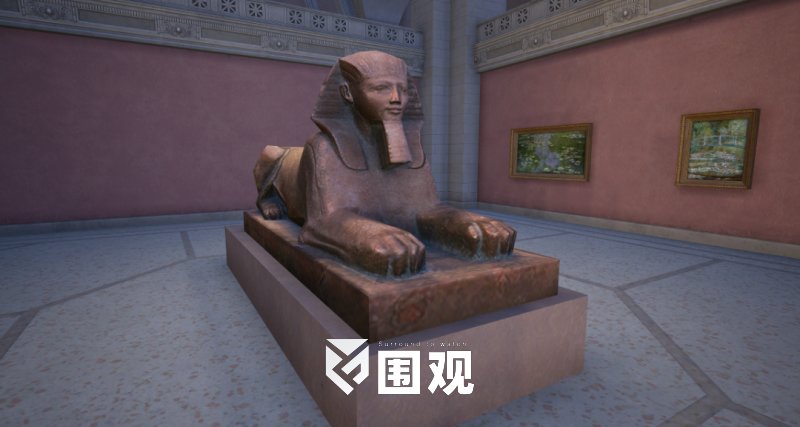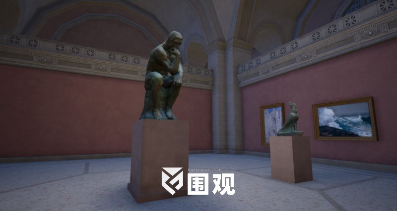还原了内部一层大厅,大厅主要分为 画展区和雕塑区 ,除了这两个区域以外,其他区域都是无法进入的。