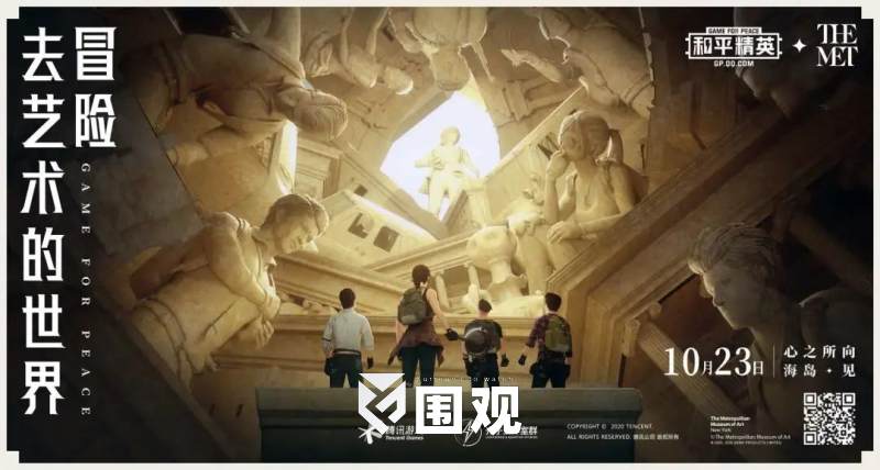 此次合作,《和平精英》自10月23日起,在游戏内发起限时活动,在“出生岛”复建了大都会艺术博物馆的建筑体,及一系列馆内的经典藏品,还推出了全新的地宫冒险玩法,让疫情期间的玩家,不出国门,也可以近距离接触来自世界的文化艺术瑰宝。