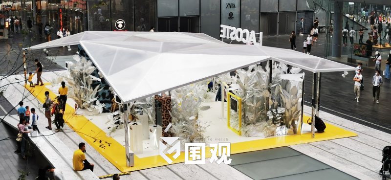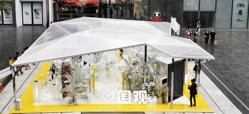 从空中看快闪店,顶棚的不规则感和不平衡感特别好看