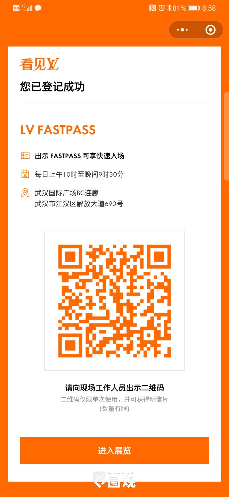 手机扫描,二维码入场