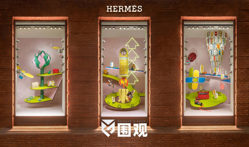 橱窗的一侧是巴黎的诗意与活力 —— 莫里斯柱、传统楼宇、火车站等建筑符号带大家领域巴黎风情;另一侧这是未来感十足的上海橱窗,洋蓟塔台、航天器、空中缆车妙趣横生,爱马仕全新系列产品更是串联其中,呼应之间展示着最新设计与两个城市各自的个性和活力!