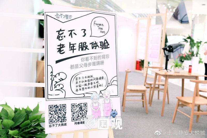 今天大悦城的“忘不了餐厅”营业啦!9月22日-27日,“忘不了餐厅”会在静安大悦城北座1楼中庭开展为期六天的阿尔茨海默病线下科普公益活动,在现场会有华山医院专家整理的“科普墙”、节目中出现过的“模拟老人体验教材”、节目同款衍生品……