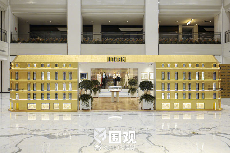 全新限时精品店梦幻复刻品牌位于巴黎蒙田大道三十号精品店的标志性建筑外墙和内部陈设,造景饰有经典迪奥灰与茹伊印花壁纸的迷你珠宝沙龙橱窗,将这座高级时装屋的传奇历史和丰沛故事娓娓道来,仿佛是一场珠宝的畅游。