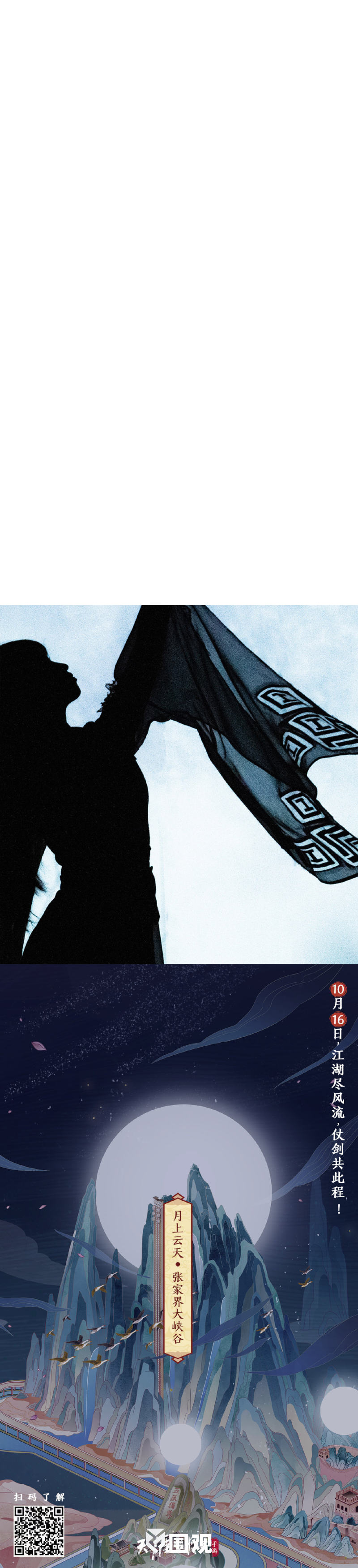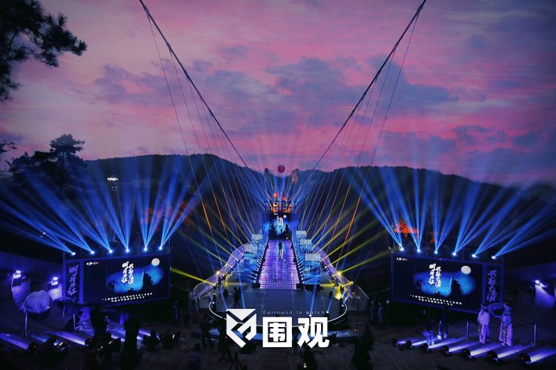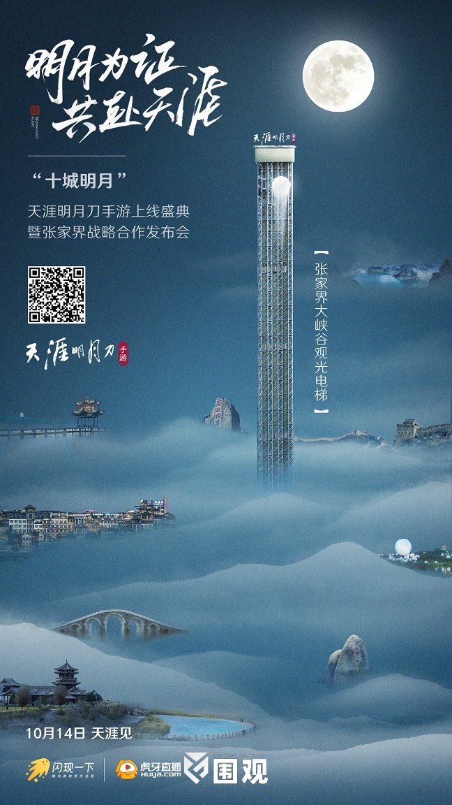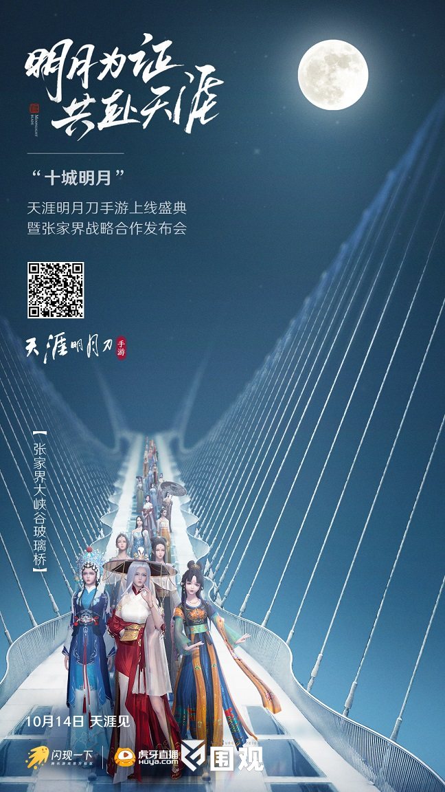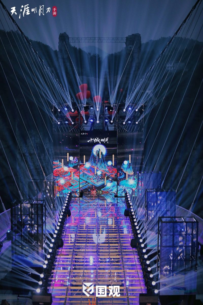 庆典: “ 十城明月 ”张家界&腾讯游戏战略合作暨《天涯明月刀》手游上线盛典启动仪式落地张家界,于云天渡玻璃天桥上演一场国风大秀,邀千万少侠共赏升月奇观。