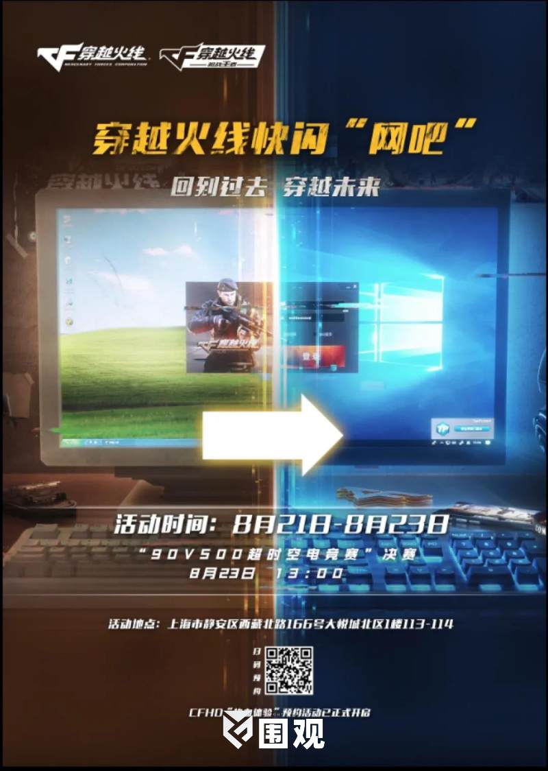 现场由2020年的现实网吧和2008年的虚拟网吧两个空间连接而成,开放式体验,全程打卡互动,现场组队参赛,还有好礼相送!