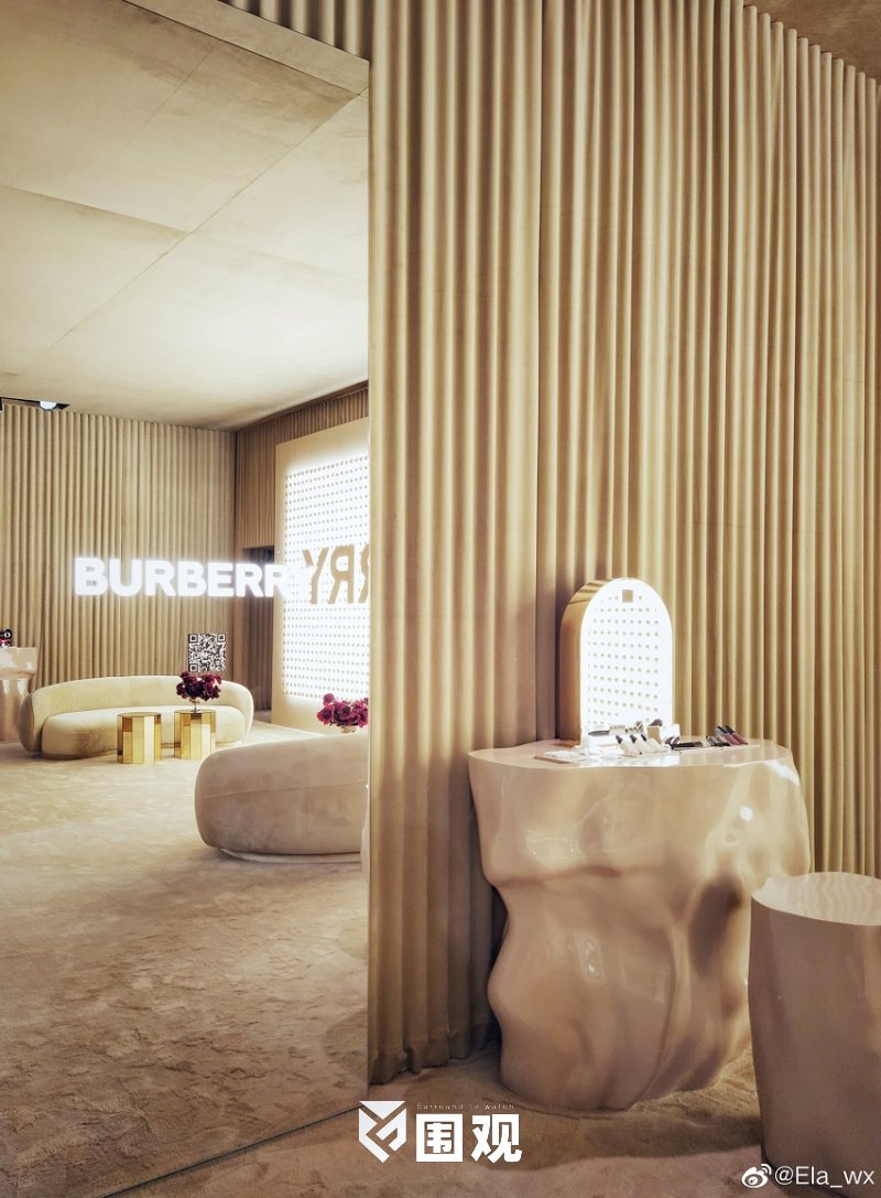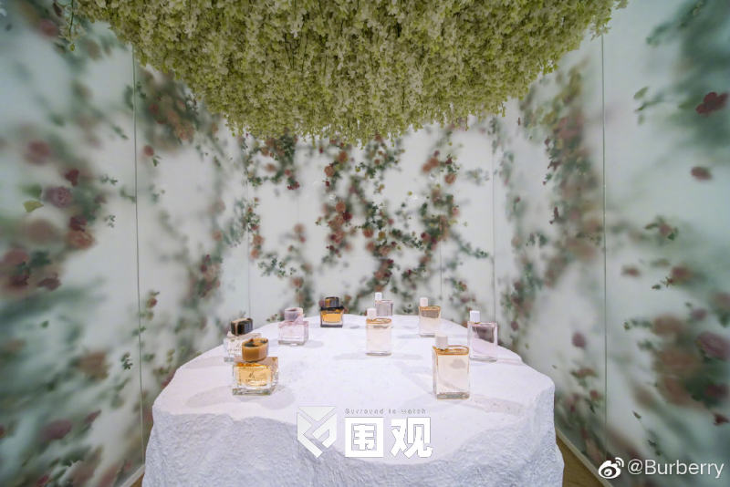 现场设置多个不同空间展示Burberry的彩妆产品及香氛