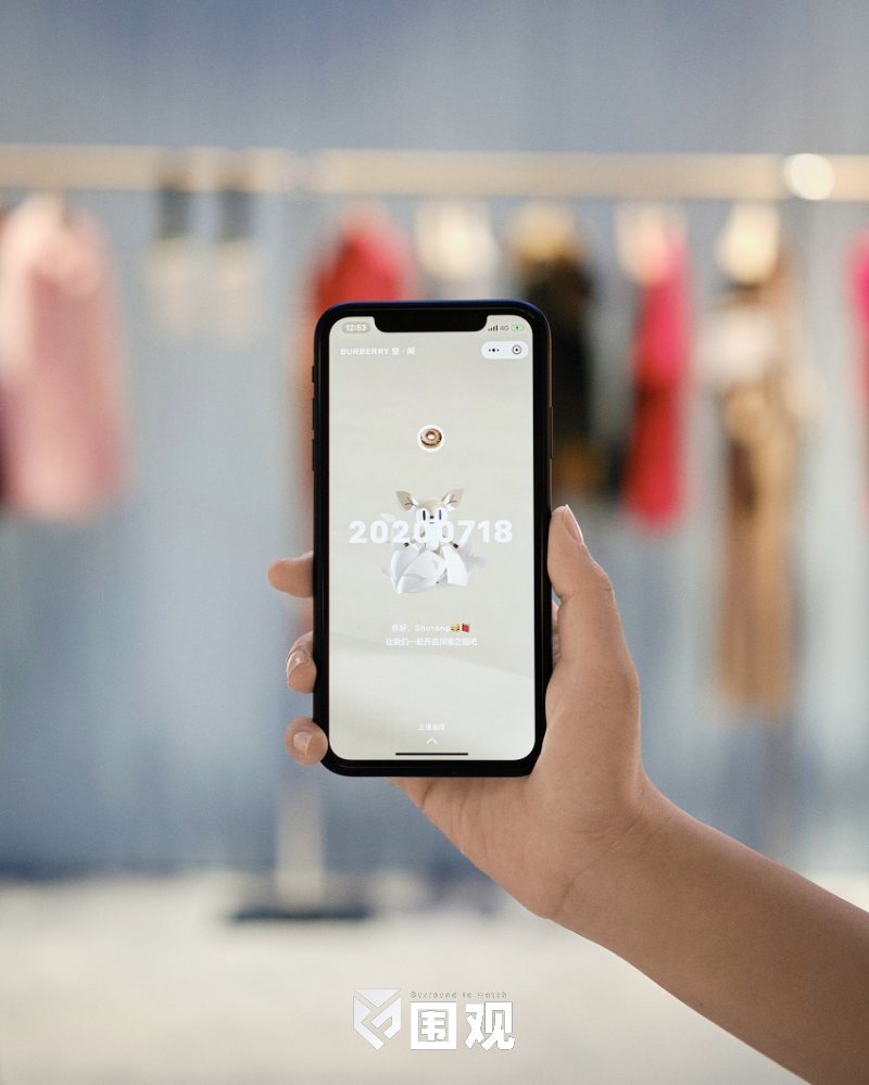 Burberry与腾讯展开技术合作的第一步是将社交平台的互动体验融入实体零售环境中,通过专门的微信小程序,顾客可以解锁专属内容和个性化体验,并将其分享给他们的好友。