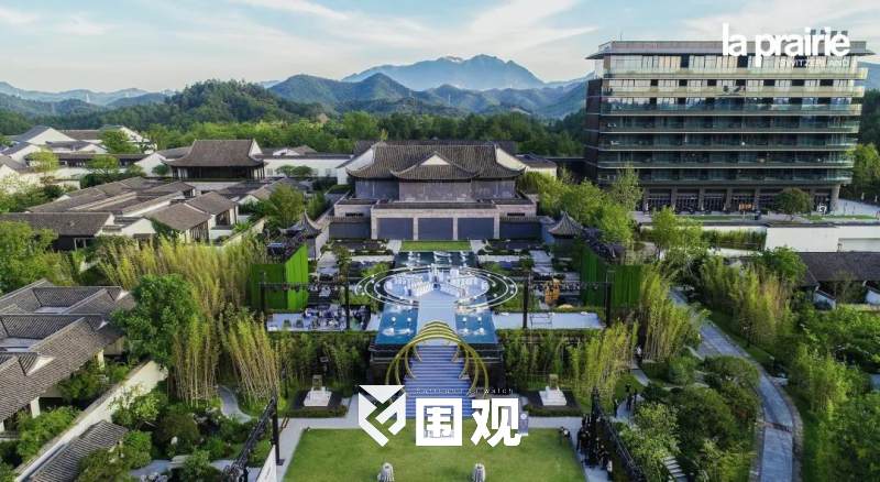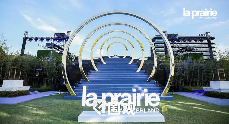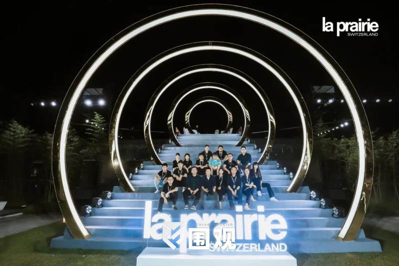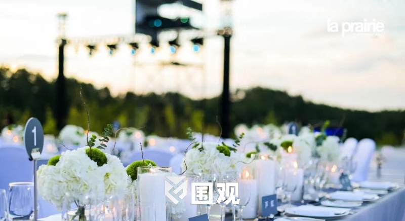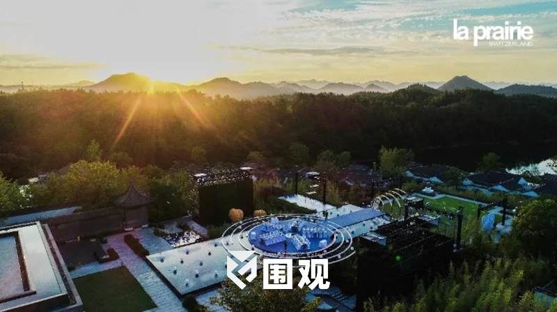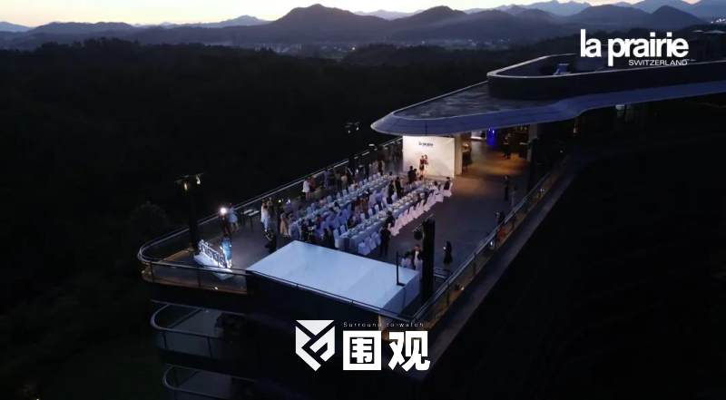 空中俯视整个晚宴现场,犹如产品的艺术造型,在青山绿水的静谧与惬意中,荡漾起一圈圈La Prairie营造的科艺美学涟漪,以唯美的意境传递品牌理念。