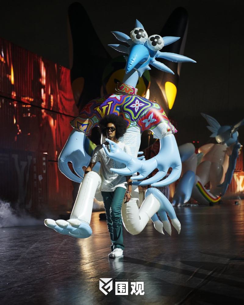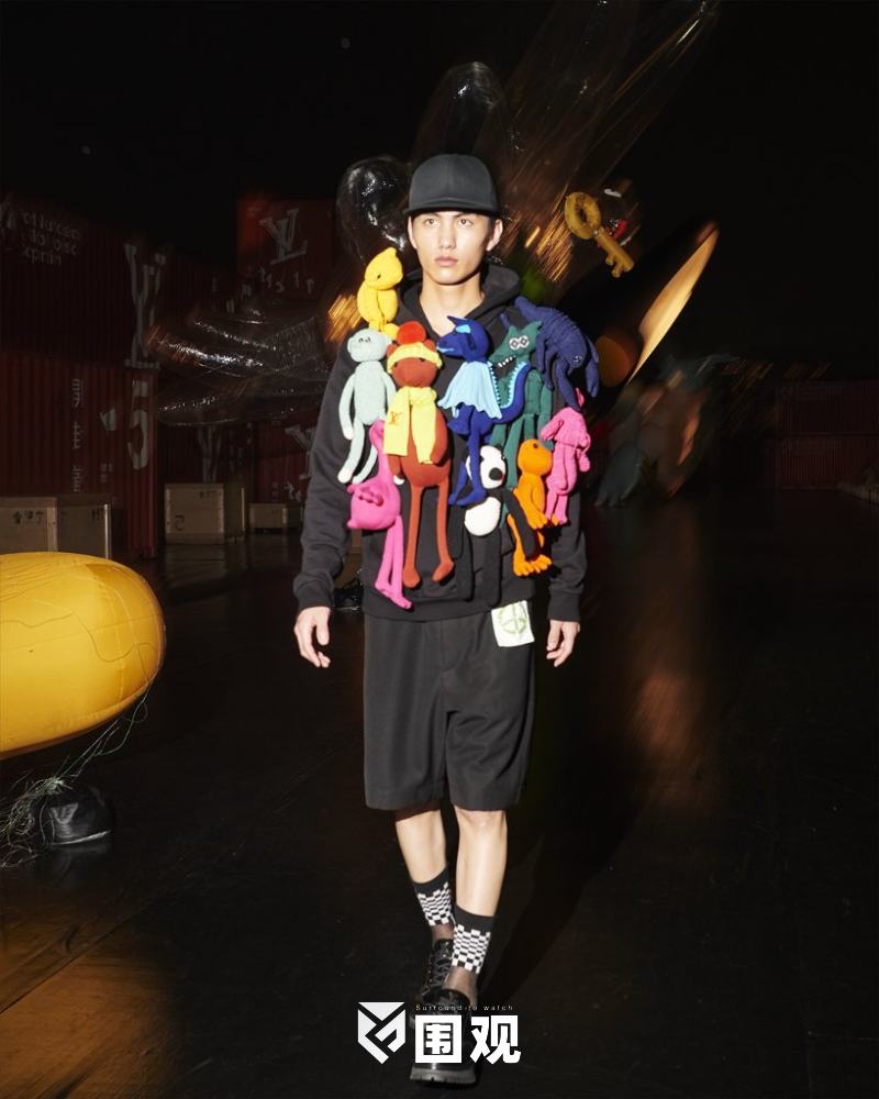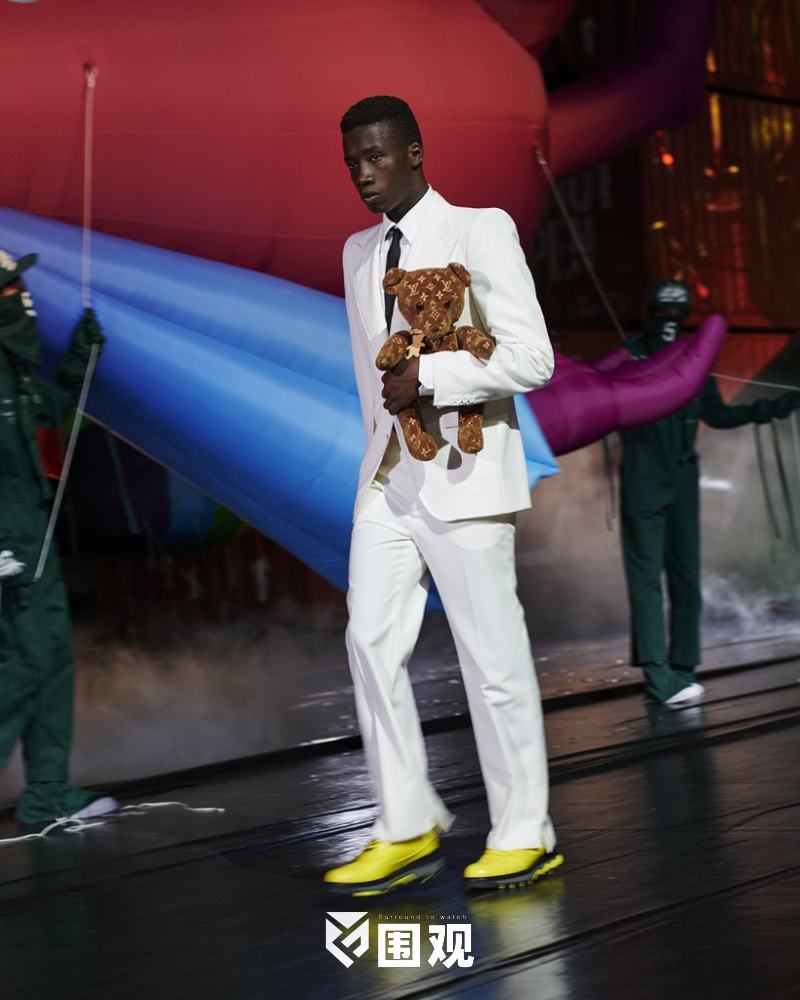 LOUIS VUITTON这场大秀有一个男模登场拿着小熊娃娃走秀的经典瞬间。