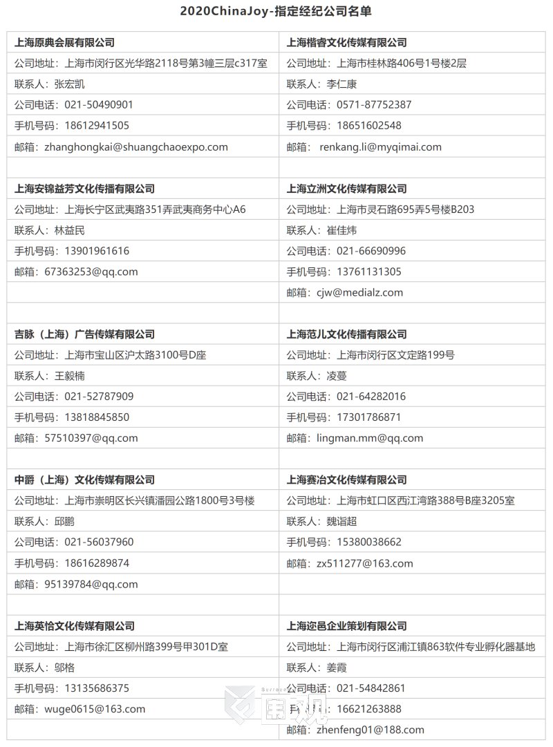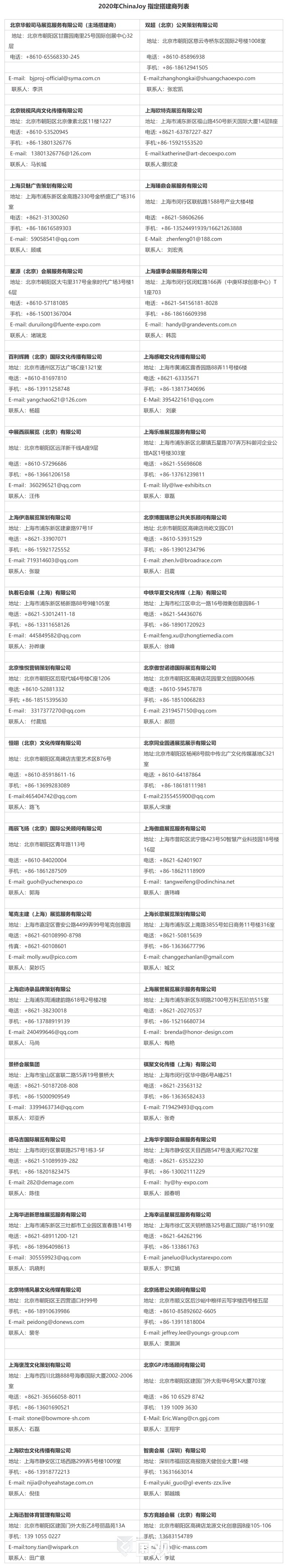 2020ChinaJoy- 指定经纪公司名单