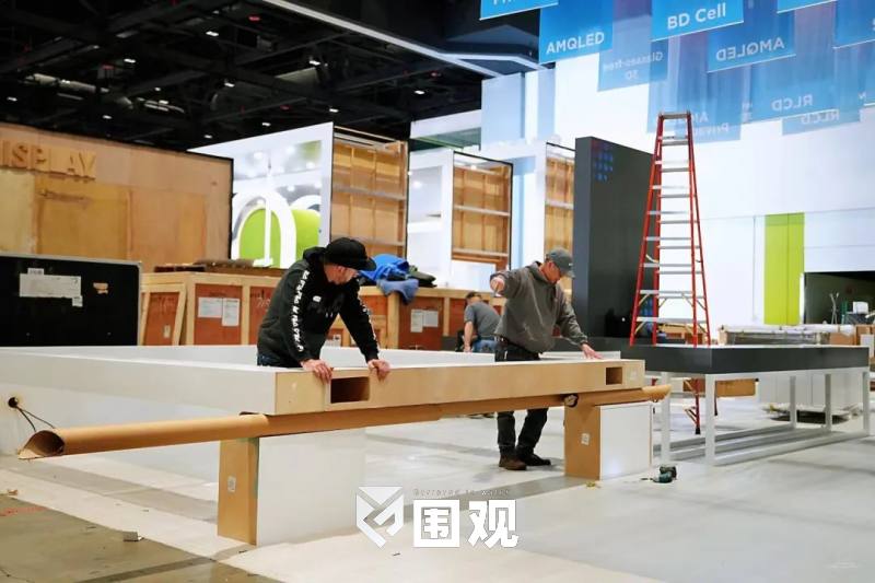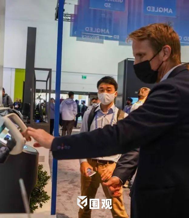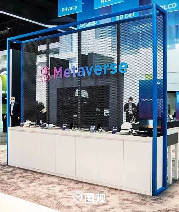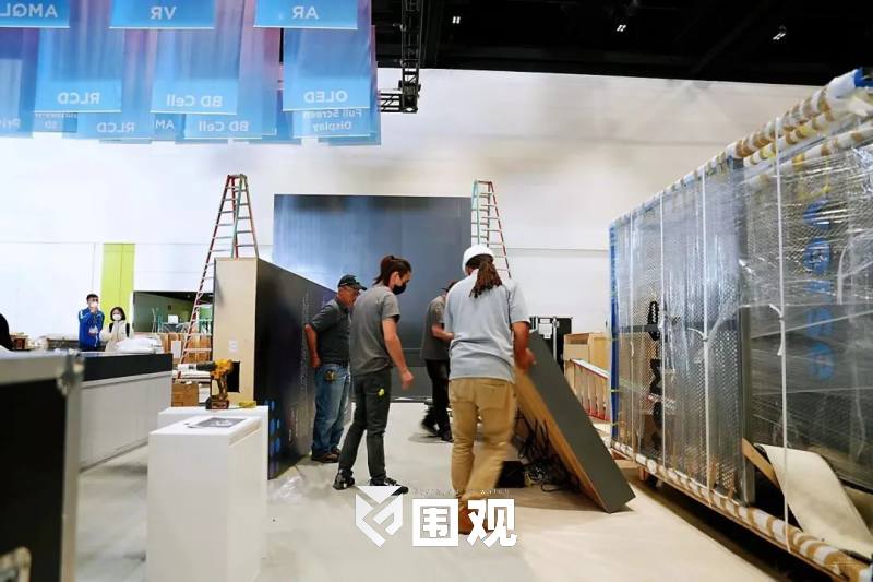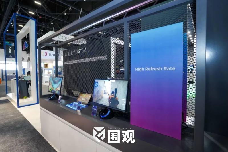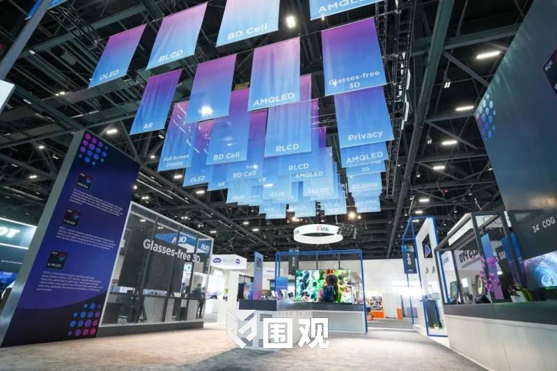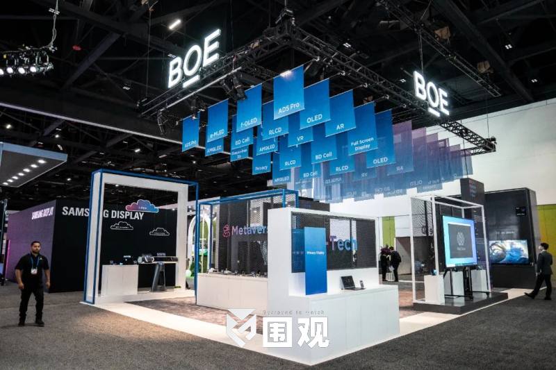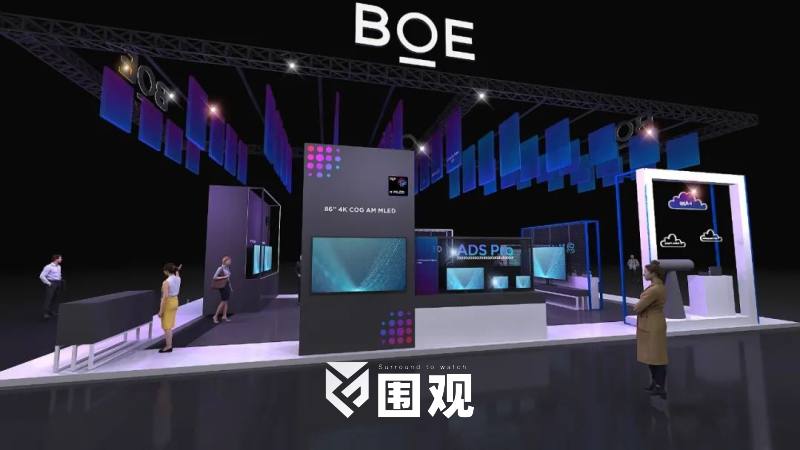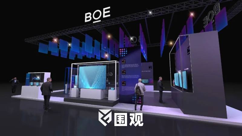 展会中,BOE展台以灰/白/蓝三色为主色调,营造大气、科技的品牌视觉氛围。