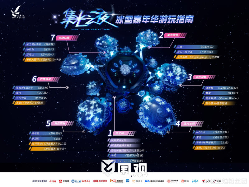 集光之夜的舞台将开启真实艺人及虚拟偶像的同台互动,演绎每一首贴合冬奥主题的歌曲。六大场景内的可交互互动也为本属于不同维度空间内的艺人制造了更多重可能,多层次舞台设计为观众们增添了全视角的沉浸式体验感。排位赛式创新互动玩法将由参与节目的你自己主导,1月28日,一起体验一场属于所有人的冬奥音乐虚拟嘉年华吧!