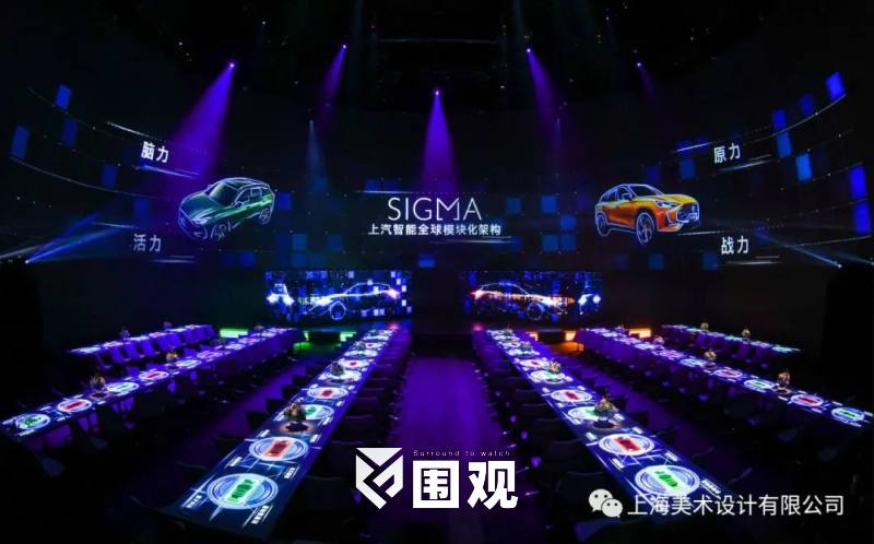 针对超母体SIGMA概念,对消费者而言难以理解。但对SIGMA概念最好的演绎,莫过于直接让所有来宾浸入其中。上海美术设计有限公司(以下简称上美)以创新场景营销方式,采用“桌面投影+270度罐体环幕投影”,打造了一场融数字感官+潮流美学的场景体验盛宴。在场景的营造上,上美紧扣MG ONE数智潮流的调性,从【声】、【境】、【意】、【智】、【型】、【潮】等不同维度,做好场景、讲好故事,将SIGMA平台之智、MG ONE之潮完美演绎。