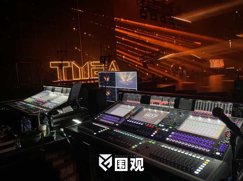 一场音乐类的盛典,灯光、舞美设计、视觉包装、运营统筹这些当固然重要,但如果缺少了声音,大家可以想像一下,这只会成为一出唯美的默剧。声音的处理绝对是整场盛典的核心之一,此次的声音处理分为了三大版块,PA主扩系统、Monitor系统及OB总混系统。今年TMEA的声音及硬件配置绝对是重量级,甚至超越了一些跨年盛典,接下来简单说说每个版块的配置与应用。